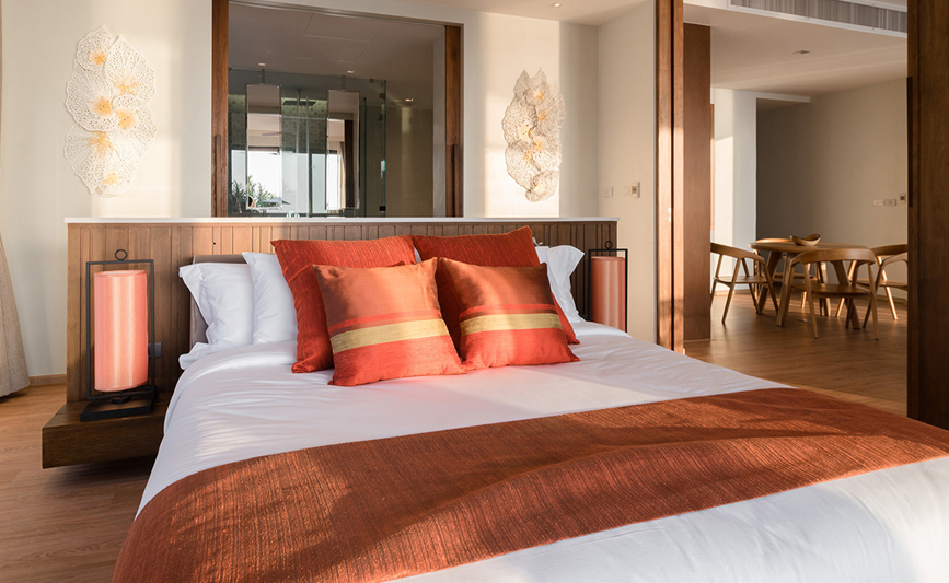 Our luxury Beachfront Pool Villa is outstanding with its tropical architecture and a touch of elegance in Asian contemporary style. The interior designs are largely inspired by the colours of nature and the local culture. The decorations are
